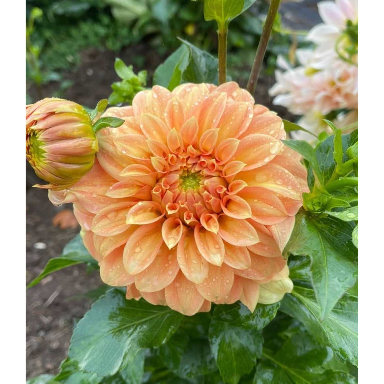 Stunning peachy formal decorative bloom with gorgeous long petals that furl backward.