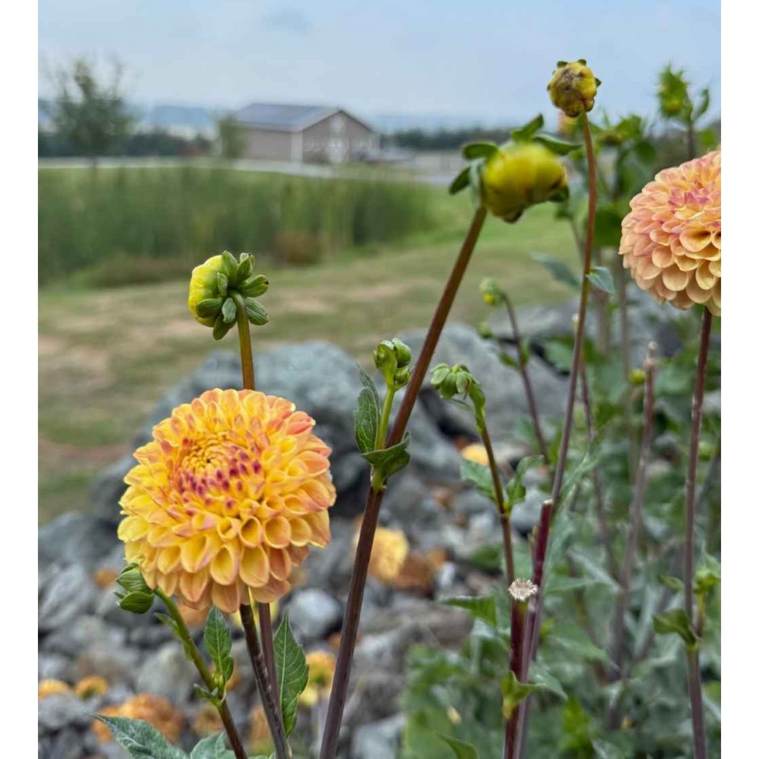 A golden yellow mini ball with a wine colored center.